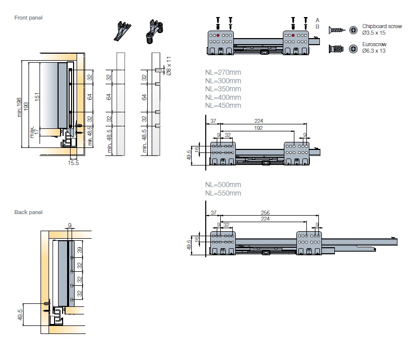 Ящик Tekform Slimline+ оснащен усовершенствованным механизмом зацепления передней панели. Инновационная конструкция гарантирует, что фасады ящиков, независимо от их размера и веса, могут быть легко присоединены или отсоединены с помощью одного и того же винта, что упрощает процесс сборки и обеспечивает надежное удержание каждый раз.