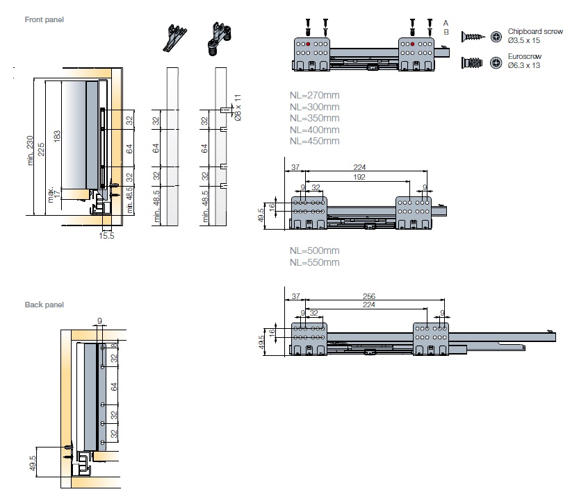 Ящик Tekform Slimline+ оснащен усовершенствованным механизмом зацепления передней панели. Инновационная конструкция гарантирует, что фасады ящиков, независимо от их размера и веса, могут быть легко присоединены или отсоединены с помощью одного и того же винта, что упрощает процесс сборки и обеспечивает надежное удержание каждый раз.