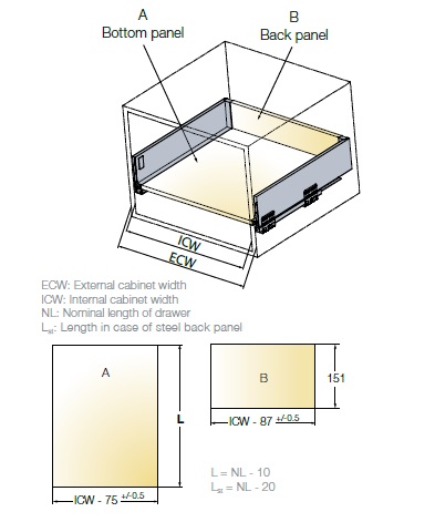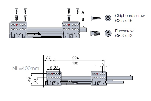 Tekform Slimline Tacto имеет активатор, встроенный в направляющую ящика, в то время как все остальные компоненты остаются такими же, как и для «стандартной» версии Slimline, а также положения сверления и фиксации.
