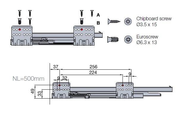 Tekform Slimline Tacto имеет активатор, встроенный в направляющую ящика, в то время как все остальные компоненты остаются такими же, как и для «стандартной» версии Slimline, а также положения сверления и фиксации.