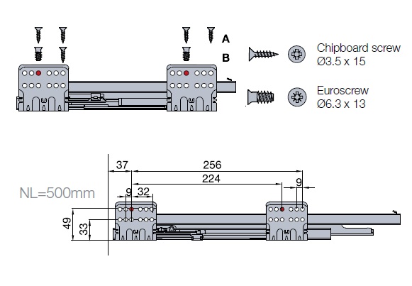 Tekform Slimline Tacto имеет активатор, встроенный в направляющую ящика, в то время как все остальные компоненты остаются такими же, как и для «стандартной» версии Slimline, а также положения сверления и фиксации.